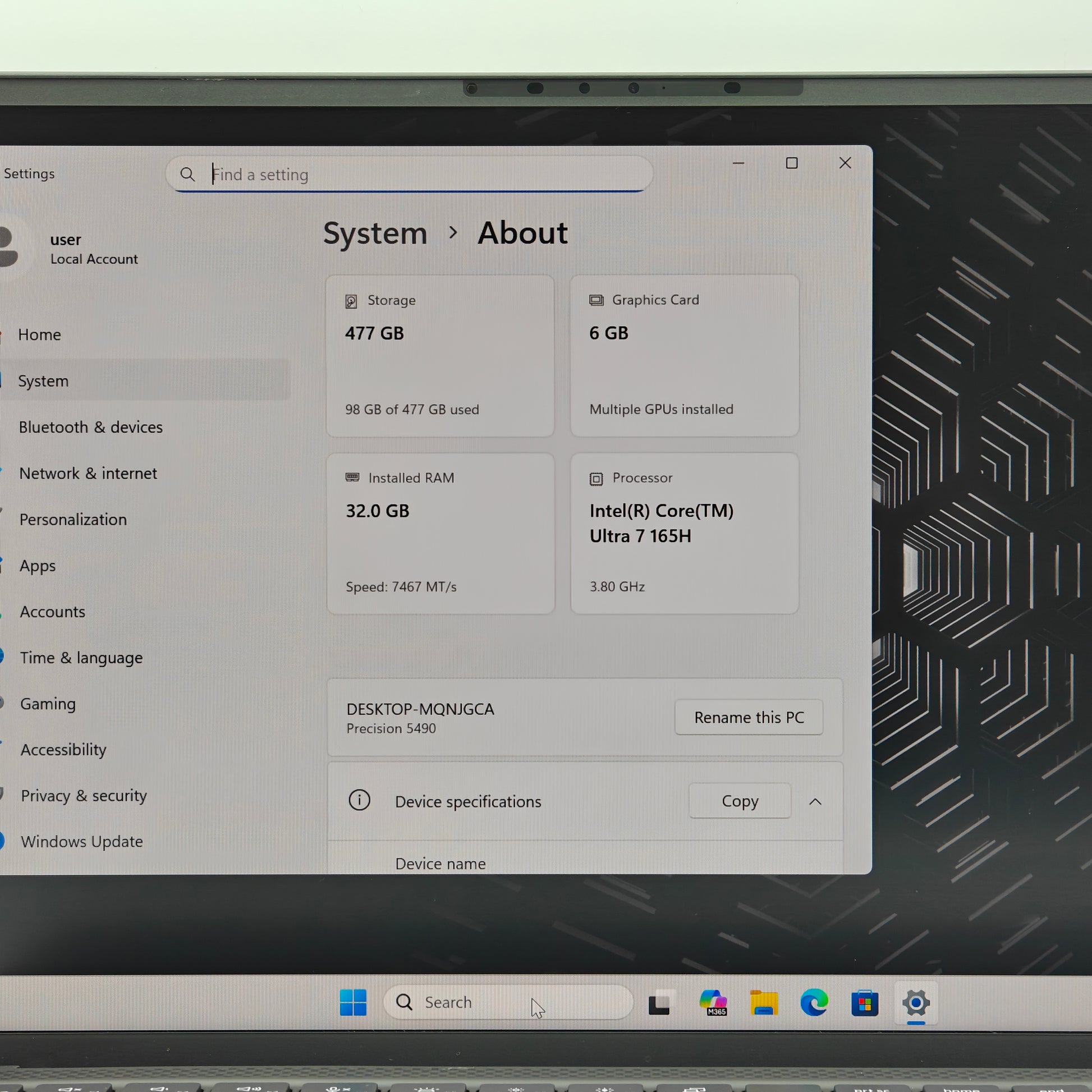 | Processor | Core Ultra 7 165H |